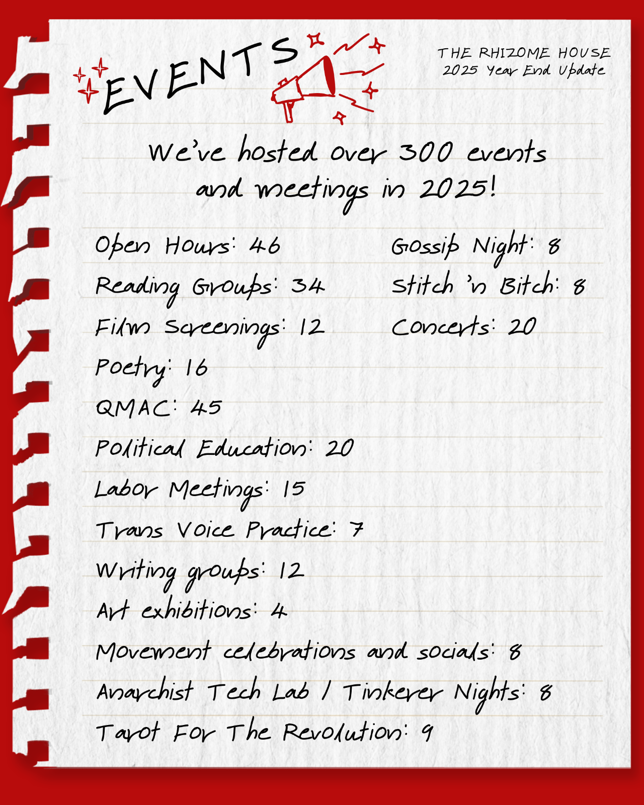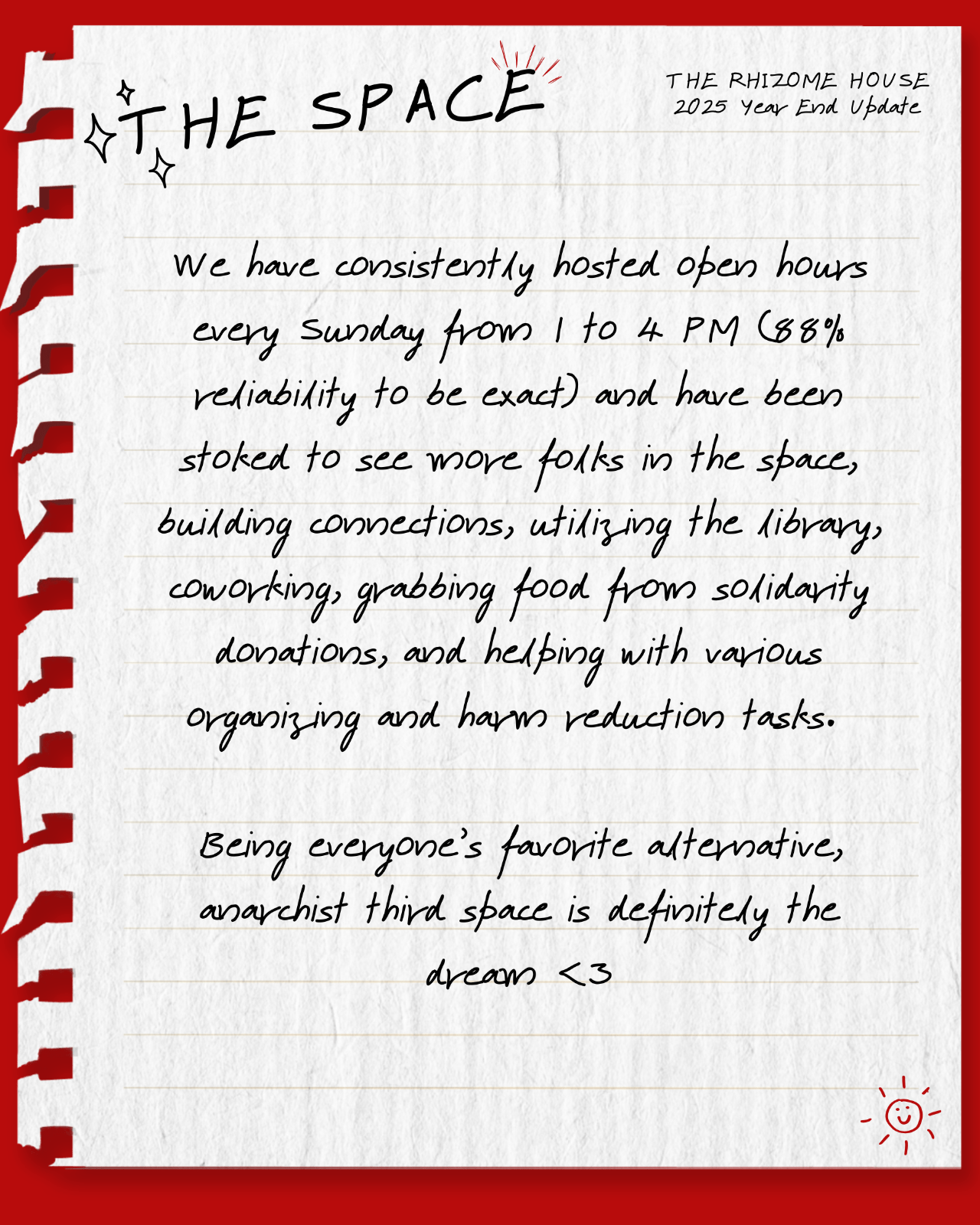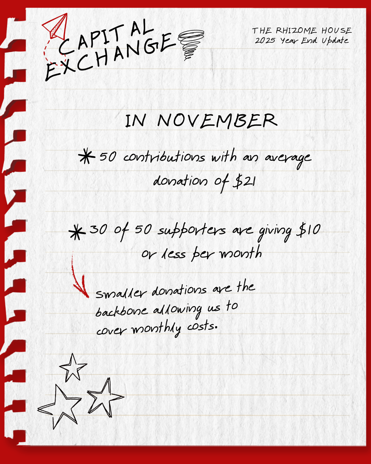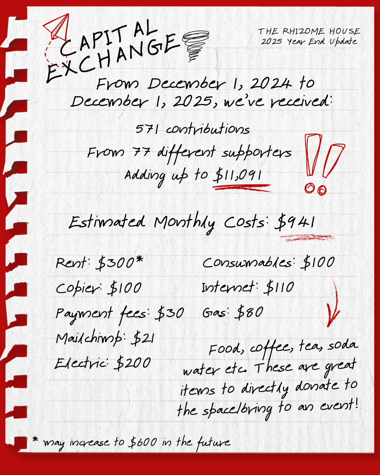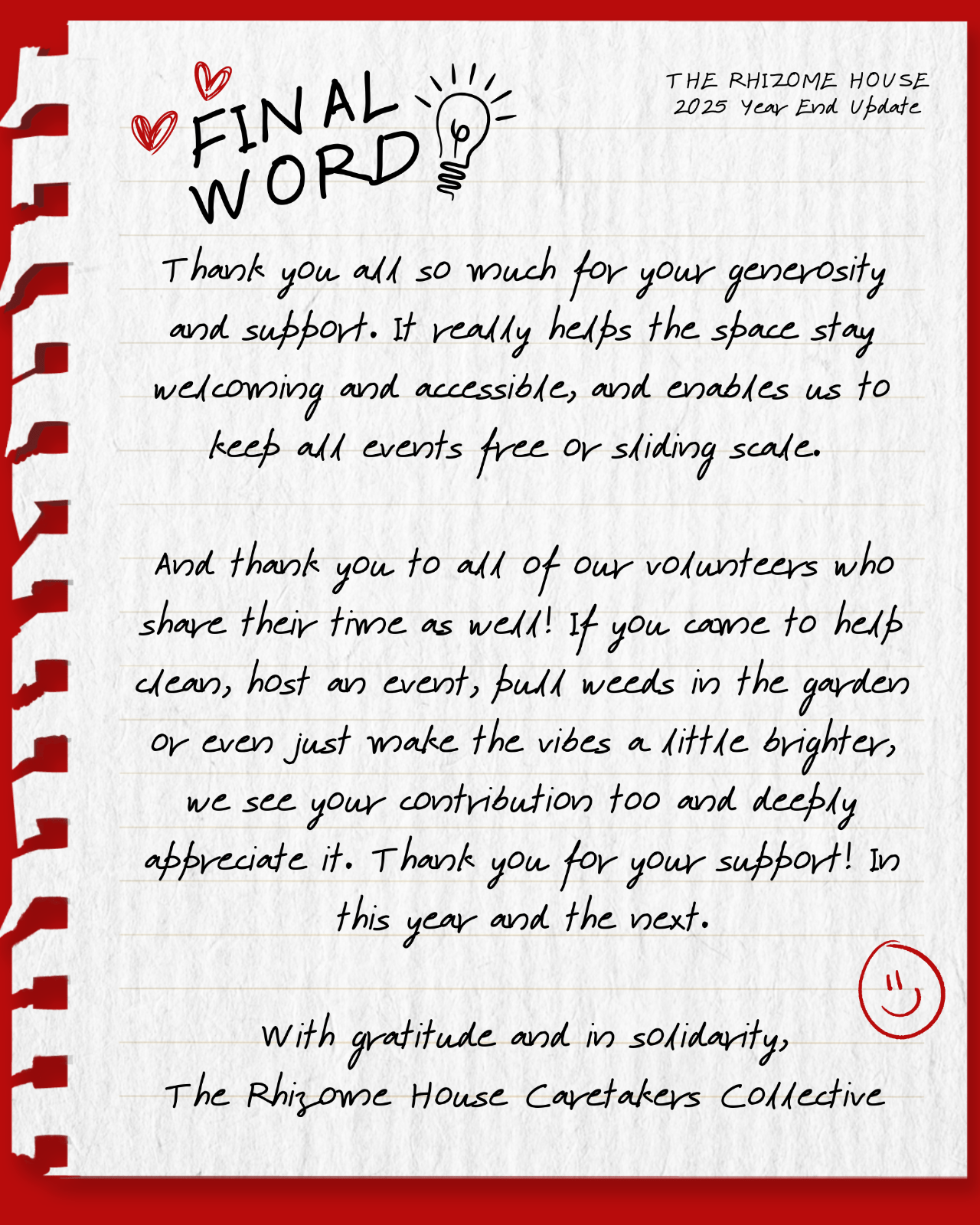 Thank you all for your support for Rhizome House the past year.